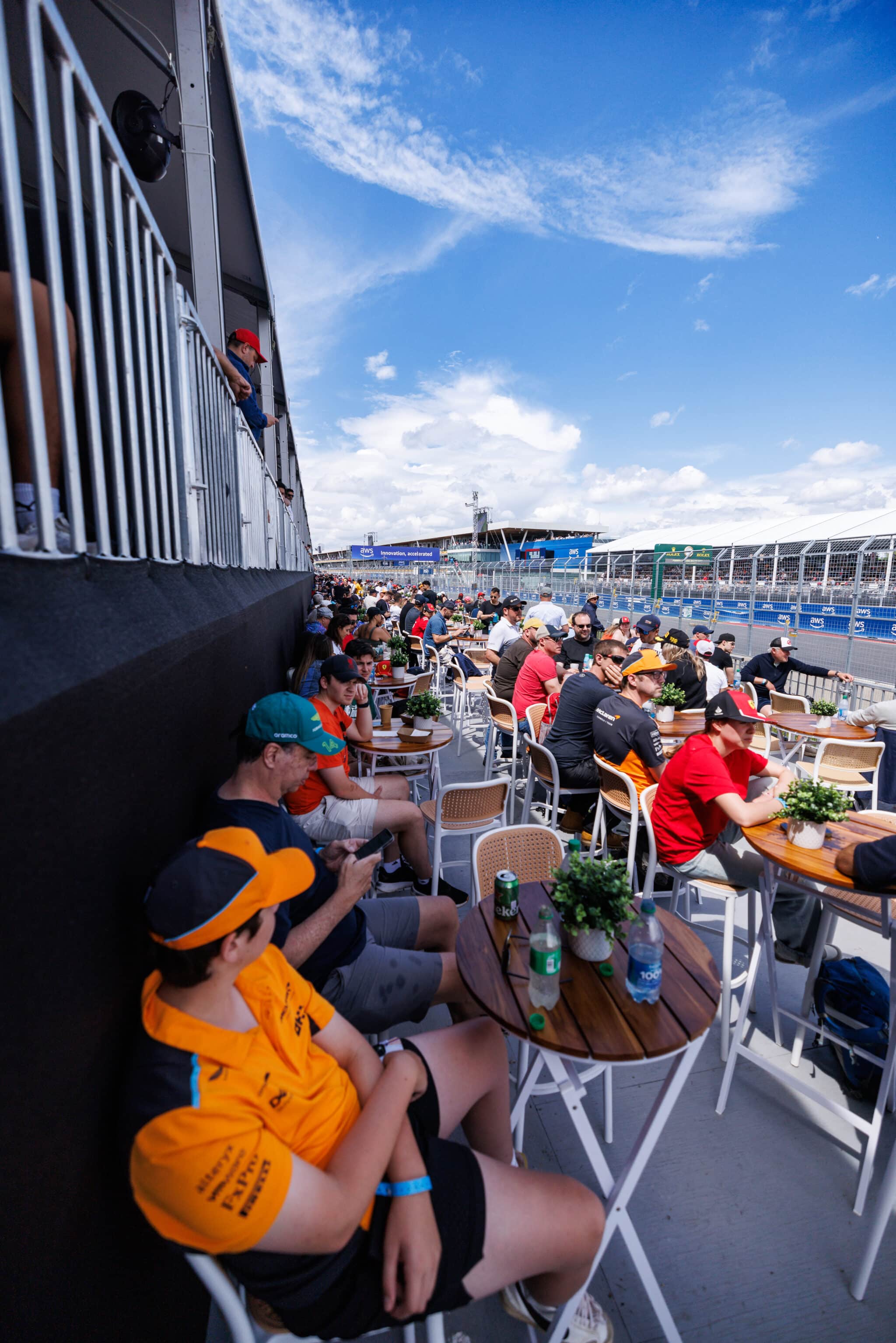 Depuis la terrasse, avec un point de vue direct sur la légendaire courbe Senna, sentez la puissance des moteurs et vivez l’énergie du Formula 1 Grand Prix du Canada comme jamais!