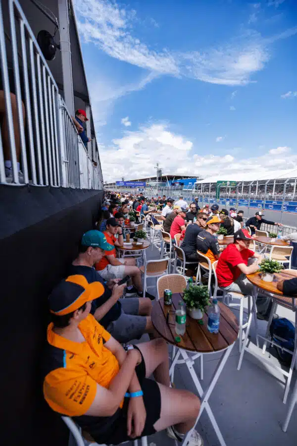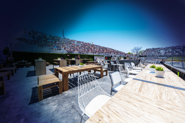 Située au pied de la tribune 34, à l’intérieur de l’Épingle, la Terrasse 34 est vendue en forfait 3 jours et offre un service de restauration ($) et bar exclusifs ($) avec service aux tables.