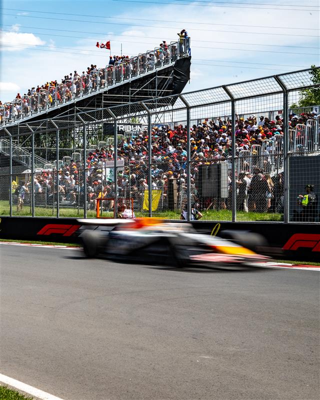 With a view of the Expo 67 biosphere and the Montreal skyline, this grandstand offers a view of the cars entering and manoeuvering the famous hairpin turn. You will witness the cars handle the right-hand turn at the hairpin and then accelerate through the slight left turn 11, heading towards the Casino straight.